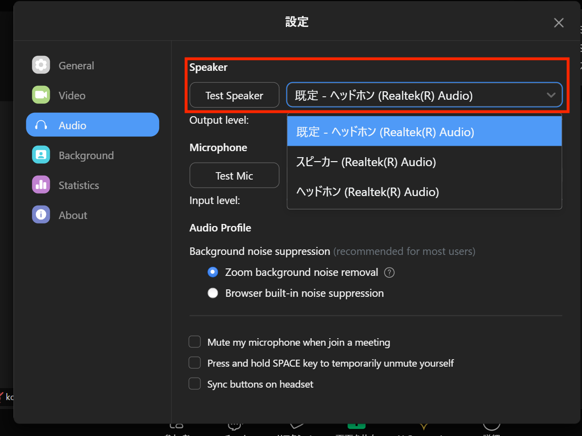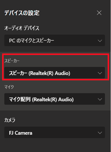 「Windowsの設定」と「Teams/Zoomの設定」で、選択しているスピーカーを一致させる必要がありますので、